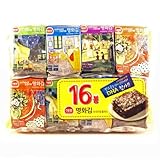 Enjoy Haepyo's School Zone MyungHwa Gim (Seaweed / Laver) as a small snack or during your meal. This premium seasoned seaweed contains salt that is rich in minerals and calcium. The full package comes with a total 16 small packs. Each pack contains 10 sheets of delicious seaweed. The roasted seaweed contains canola oil, perilla seed oil, calcium salt, sesame seed oil, and SJ-DHA22 (fish oil, egg yolk, lecithin). Because of its small packaging, it's convenient to grab when you're on the go, packing lunch for yourself or for children's school lunch, or to simply snack on by itself between meals. It's ideal for an Asian meal. It makes a good combination with steamed rice. It's also perfect for garnishing, flavoring or using as condiments in Asian noodles, stir-fries, or salads. Try it and you'll love it! It's recommended to keep in a cool area. Try to avoid storing in direct sunlight or humid areas. Once the package is opened, consume in a timely manner for ideal fresh taste! Read more