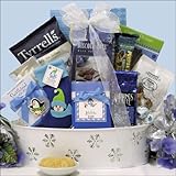 Send wintry fresh Holiday wishes with this Winter themed gourmet Holiday gift basket. Offers a wide assortment of winter and snowman themed gourmet foods like Lindt Milk Chocolate Snowman truffles, Snowman's artichoke dip mix, white chocolate cocoa mix in a gift boxed ornament, "Penguin Fun" shortbread cookies, chocolate chip cookies in Penguin gift box and more! Includes premium gift foods like Harry London Cappuccino Biscotti Joys, Lindt truffles, and award winning cookies from Too Good Gourmet carefully arranged in this metal tin with snowflake cut-outs. Read more